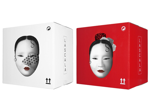 El diseño de la marca se organiza a partir de un diseño dual. Por un lado, aparece la máscara blanca con ojos rasgados, un símbolo claramente asociado a la cultura china, que se integra sin estridencias en la estética general de la etiqueta. Por otro, se reafirma la herencia española mediante tres elementos típicos hispanos: la peineta, el abanico y la bailadora, que aparecen en cada una de las presentaciones de los vinos de Lascala.