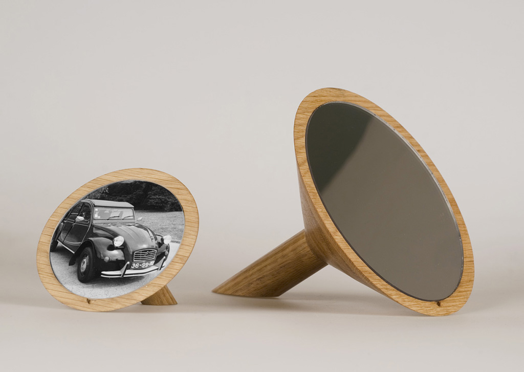 Esta dualidad entre presencia y ausencia se resuelve en un espejo y un marco de mesa desarrollados dentro de un programa de identidad local en la región portuguesa de Beira Baixa.