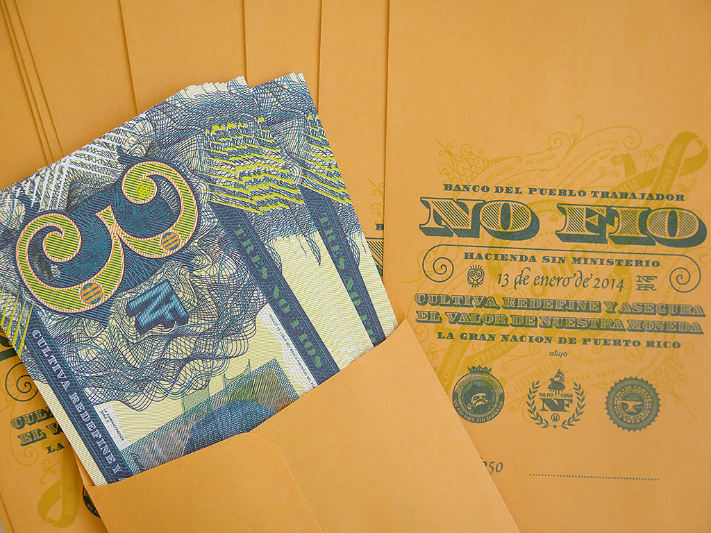 La pieza integra iconografía local, recursos gráficos inspirados en técnicas de grabado monetario y elementos de seguridad visual. El número “3” opera como eje conceptual por su referencia a las tres islas principales del archipiélago puertorriqueño.