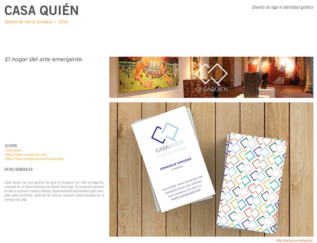 Diseño de identidad para Casa Quién desarrolla el sistema visual de una galería y boutique de arte emergente ubicada en la Zona Colonial de Santo Domingo.