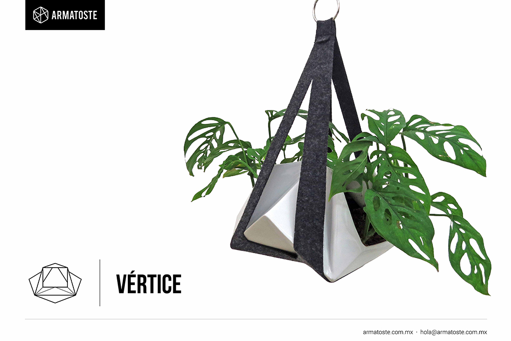 Colección Angular Familia de productos que explora las características, capacidades geométricas, posibilidades de combinación de color y el resultado estético y funcional de la asociación de cinco materiales: plástico, cerámica, madera, fieltro y metal.