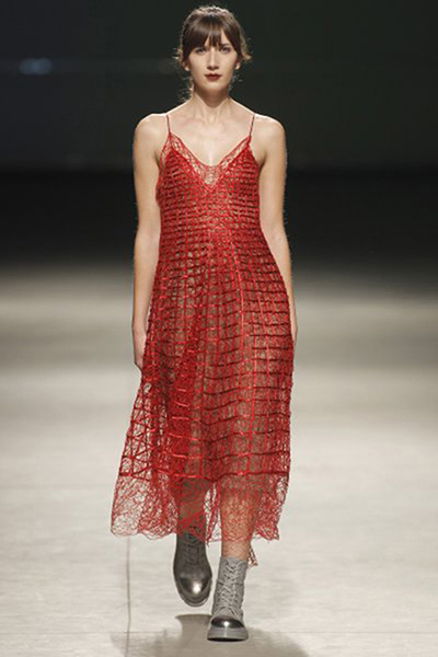 Las piezas se construyen hilo a hilo, en un punto intermedio entre tricot y tejeduría, generando una identidad material singular dentro del diseño de moda de autor.