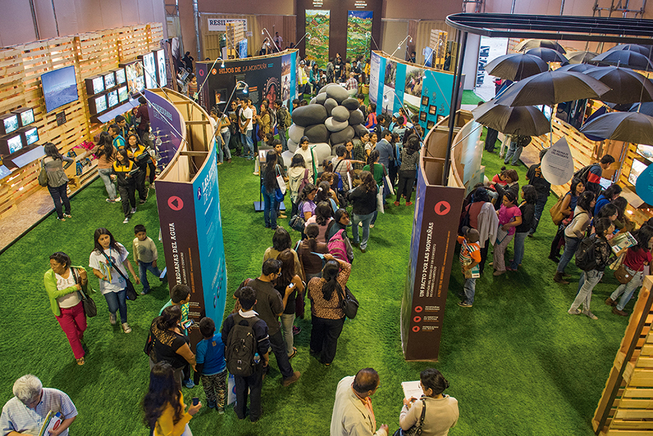 Pabellón de Montañas y Agua Conceptualización, diseño y producción de 400 m2 para la feria climática Voces por el Clima, realizada con motivo de la Cumbre Mundial de Cambio Climático (COP20).