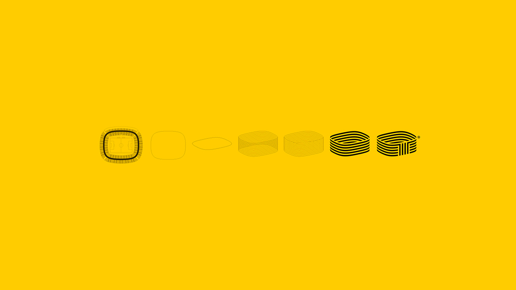 El nuevo logo sintetiza la construcción del estadio, su estructura y a sus protagonistas centrales: socio e hincha, reforzando pertenencia y continuidad simbólica con la familia pictórica del club.