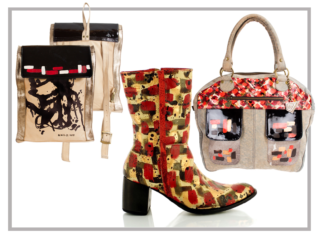 La propuesta suma a sus bolsos de cuero intervenidos a mano una línea de calzado con detalles originales y tacos pintados, reforzando una estética autoral entre moda y artesanía.