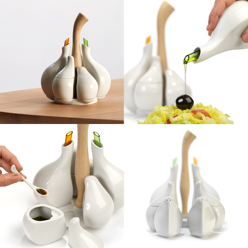 La propuesta utiliza materiales naturales y en su realización fusiona tecnología y artesanía. La serie consta de tres diseños: Ajorí, set para condimentos inspirado en una cabeza de ajo, un elemento universal, aunque muy asociado a la cultura española; Soytun, inspirado en una espina de atún encontrada en una playa de Cádiz, pieza diseñada especialmente para los amantes del sushi o sashimi, y Titobowl, inspirado en una aceituna, propuesta para la degustación de distintos aderezos de aceitunas con hueso.