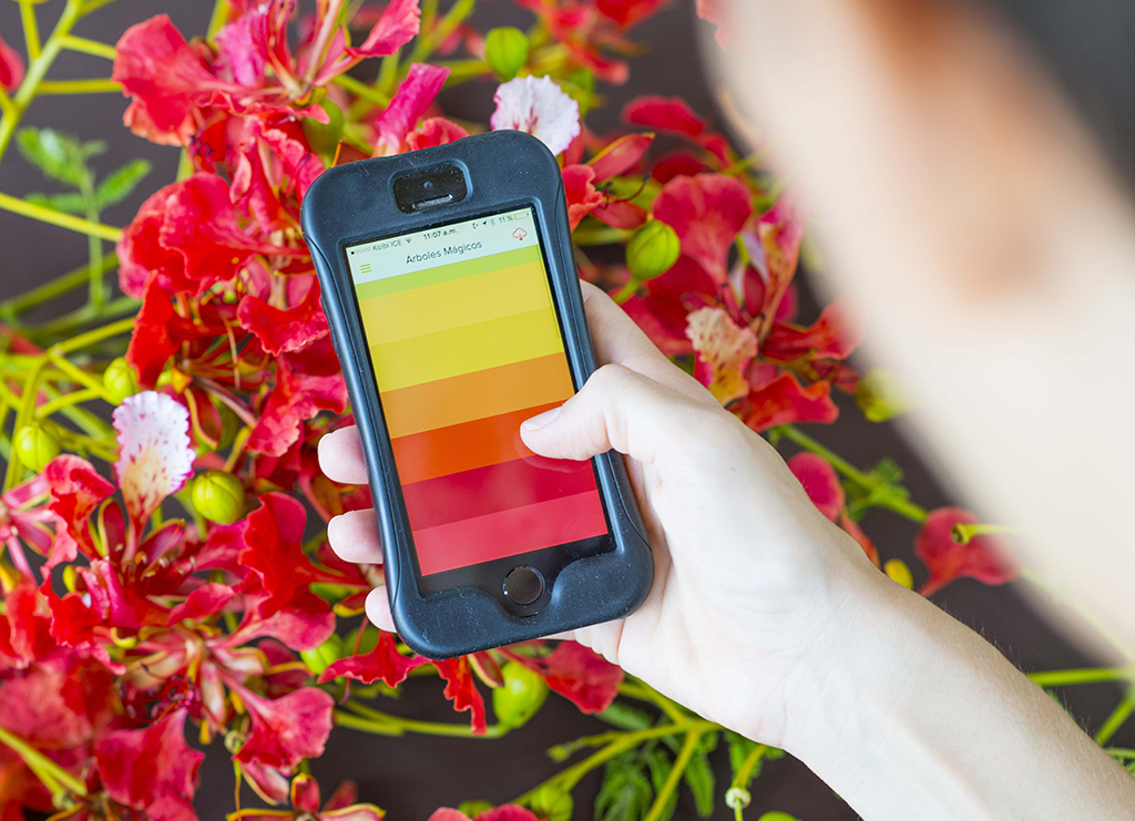 Los árboles en temporada de flor generan una gran curiosidad entre los habitantes y turistas del país, y su observación generalmente sucede en situaciones donde no es posible consultar fácilmente el nombre o rasgos de una especie. Ojeadores es una herramienta móvil que permite identificar especies por medio del color de su flor. La interfaz principal invita a elegir el color observado para navegar sobre la información de las especies. Además, introduce conceptos sobre cultura de floración y mindfulness.