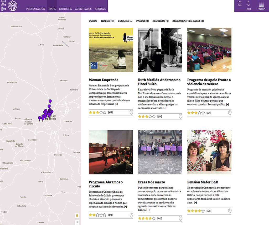 Women’S Terrain. Compostela, Territorio das Mulleres Proyecto que pretende contribuir a un nuevo modelo de ciudad más igualitaria, integradora y libre de violencia machista, implicando en ello a distintos agentes sociales y económicos que se comprometen a adoptar una perspectiva de género.