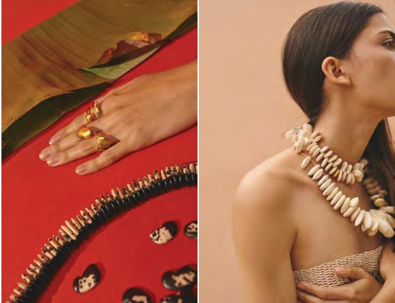 Inspirada en las malas budistas y los rosarios católicos, la propuesta combina espiritualidad, diseño y oficio material. Un frijol de bronce bañado en oro de 24k actúa como signo de luz y esperanza dentro de cada pieza.