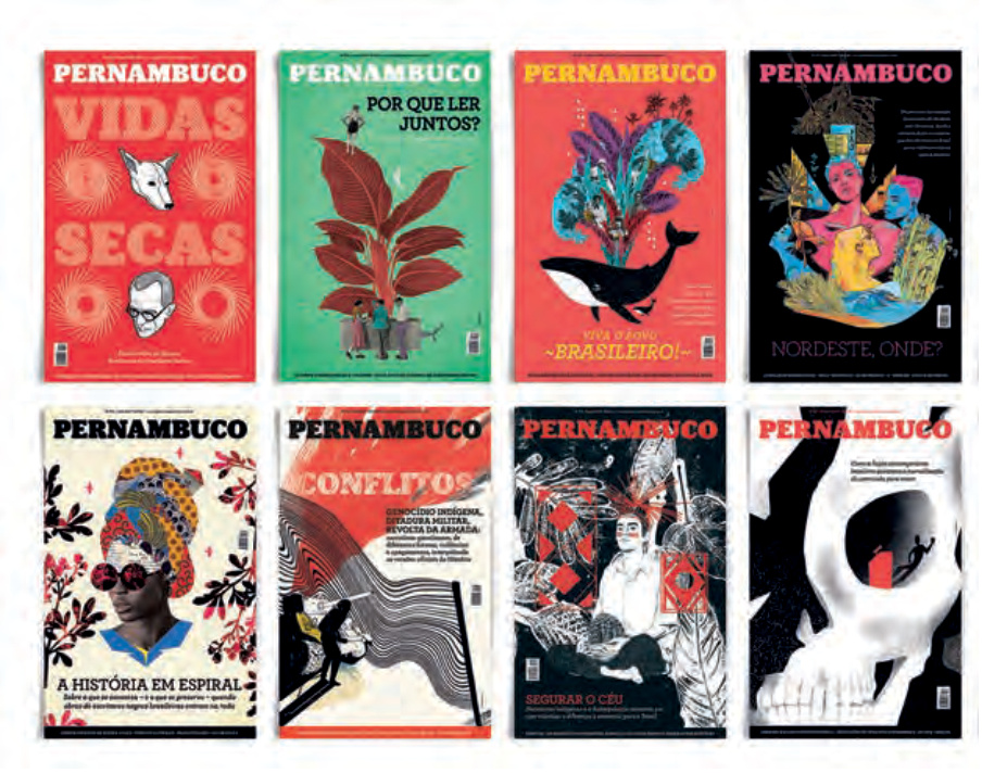 Suplemento Pernambuco combina literatura y diseño editorial con una dirección de arte diversa para abordar crítica social en Brasil.