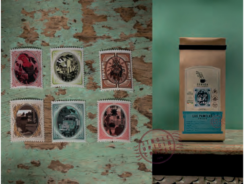 Etiquetas troqueladas, altorrelieves, estampillas restauradas e ilustraciones de origen refuerzan trazabilidad y carácter de finca. Además, el sistema destaca el rol de las mujeres en la cadena cafetera, integrando dimensión social a la comunicación del producto.
