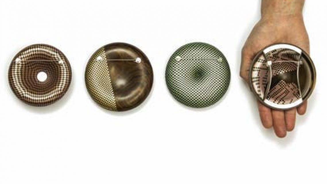 Su proceso combina torno manual, talla en madera con espesores mínimos, impresión 3D en resina y ensambles en plata ley 925. La serie se integra además con la técnica prehispánica del Mopa Mopa, aplicada por el maestro Germán Obando mediante cortes manuales de resina natural.