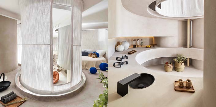 El proyecto utiliza elementos cilíndricos que evocan troncos y un textil ecológico para favorecer fluidez espacial y equilibrio ambiental. Su organización multinivel, sin barreras arquitectónicas, amplía la experiencia de uso para distintas especies y rutinas.