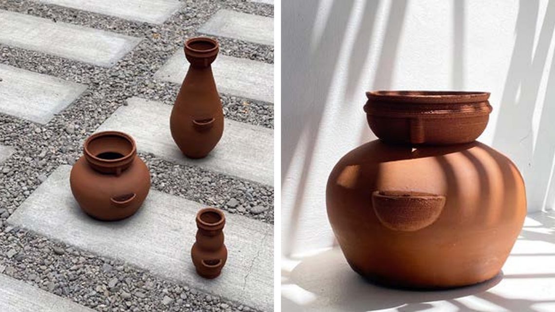 Orígenes Product Design reinterpreta la Cultura Cosanga en una serie de floreros porosos que permiten germinación de semillas y crean microecosistemas vivos.