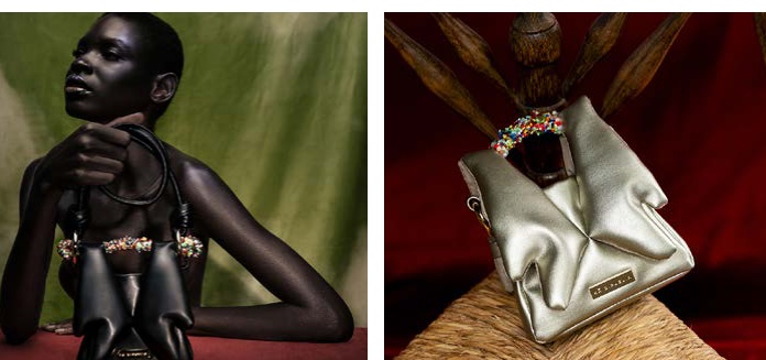 Destaca por asa multicolor bordada a mano con cuentas de cristal. Esta perspectiva refuerza el diseño como herramienta activa para preservar memoria y proyectar nuevas posibilidades de futuro.