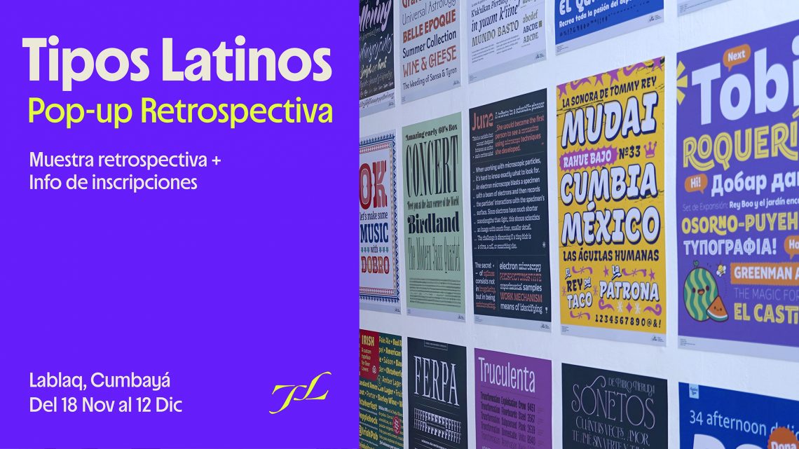 Este pop-up en Lablaq (Cumbayá) presentará una selección de 12 láminas destacadas de la bienal Tipos Latinos 2022. Es una oportunidad para reencontrarnos con la comunidad, conversar sobre tipografía y compartir cómo participar en la edición Tipos Latinos 2026.