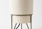 Patio: luminaria de mesa en cerámica y hierro con lenguaje escandinavo